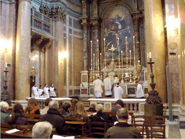This Sunday I joined some friends who are regulars at the parish church of Santissima Trinità dei Pellegrini (Most Holy Trinity of Pilgrims). Trinità is the personal parish in Rome for the extraordinary form of the Roman Rite, more commonly called the Tridentine Rite. It is staffed by the Priestly Fraternity of St. Peter.