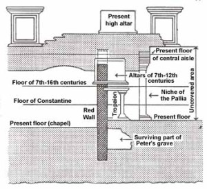 It was this Necropolis that was excavated under the orders of Pius XII between 1939-1949. The remnants of the shrine was found, as described by ancient sources (in 160 AD, Gaius described the Trophy of St. Peter) – the tomb of Peter had been discovered!