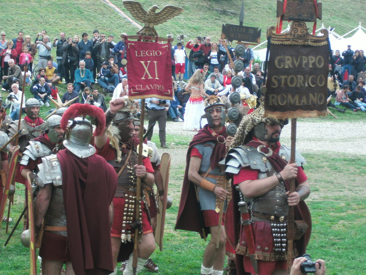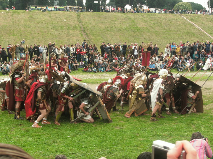 Apparently there is a lot going on in Rome this week. Every year there is a “culture week” in which the national museums and sites like the forum and coliseum are open for free. Also, in and around the forum, there was apparently a re-enactment honoring the birthday of Rome, officially celebrated later this week, on 21 April. We missed most of that, but heard about some goings on down at the circus maximus. So, in true Roman fashion, instead of writing a paper I went to go watch the barbarians battle it out with the legions, some gladiator duels, and even some belly-dancing Imperial cheerleaders. You never know what will happen in Rome!