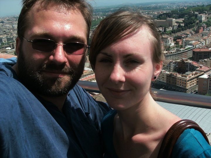 Once at St. Peter’s, a short elevator ride takes you from the ground floor to the basilica roof, the level of the saints’ statues, for €7. It is not a bad view from this level, but with 323 steps to (almost) the top of the dome waiting, we decided to move on. We re-entered the basilica at this level – and thank God for the metal cage installed in addition to the railing! I have never been that fond of heights, but being inside a building this massive, this high up, was enough to remind me what vertigo feels like. Just a little.