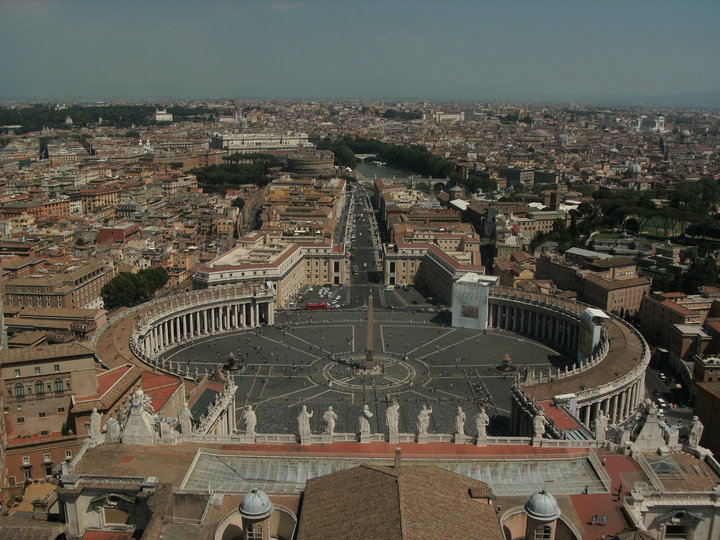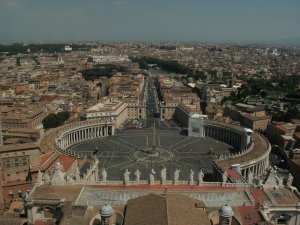 There really is nothing higher than St. Peter’s in Rome. Even the fabled hills of rome barely rate from this height, though we could see the Lay Centre and some of the other features of Rome – the Altar della Patria, the Pantheon roof, the towers of Santa Maria Maggiore, and a commanding view of the Piazza and Via della Conciliazione out to the Tiber. The viewing platform circles the entire base of the lantern at the top of the dome, so there is a good view of the Vatican Museums and gardens, the various buildings. You can see very well how small the world’s smallest sovereign state really is!