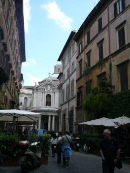 Over the next 12 days I made sure we visited all the familiar sites in the historic center: the four major basilicas, the fori imperiali, the pantheon, piazza navona, trevi fountain, the Gregorian and the Angelicum, and others. Given her Byzantine interests, we made a point to spend time in Santa Maria in Domnica, Santa Maria in Trastevere, San Clemente and Santa Praessede. We also managed a decent amount of gelato and genuine Roman pizza dinner on the Via della Pace, a classic Roman outdoor street scene if ever there was one.