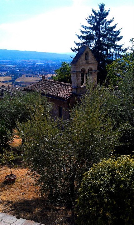 As we approached, we saw a small sign inviting us into the adjacent monastery garden for rest and refreshment. On entering we found a small group of pilgrims from northern Germany who were in town with a total of about 20 from their parish, including the pastor, who were spending a few weeks in Assisi offering this simple hospitality ministry in shifts. Shade, water, and greenery with a view was a most welcome respite in the heat of the day (though much cooler than Rome, at 30C/85F it was still hot!).