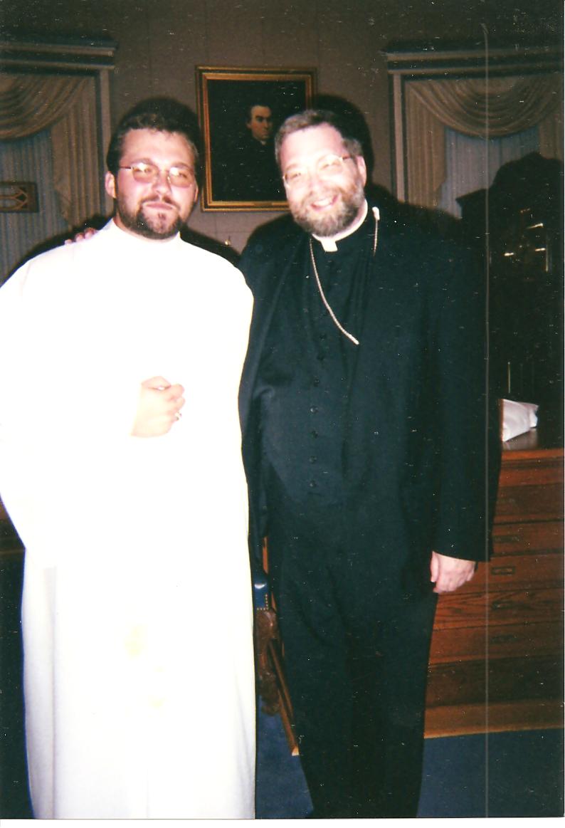 Of course, it was not me, but Daniel Jenky, CSC, rector of the basilica who had been so nominated. I was merely serving as vimpa for Bishop John D’Arcy, who was on hand to make the announcement. I was also jokingly referred to among the other servers and basilica staff as Fr. Jenky’s body double, so alike we looked with beard and glasses. Vested in alb and vimp veil, it is no surprise I was mistaken for the bishop-elect on more than one occasion that day.
