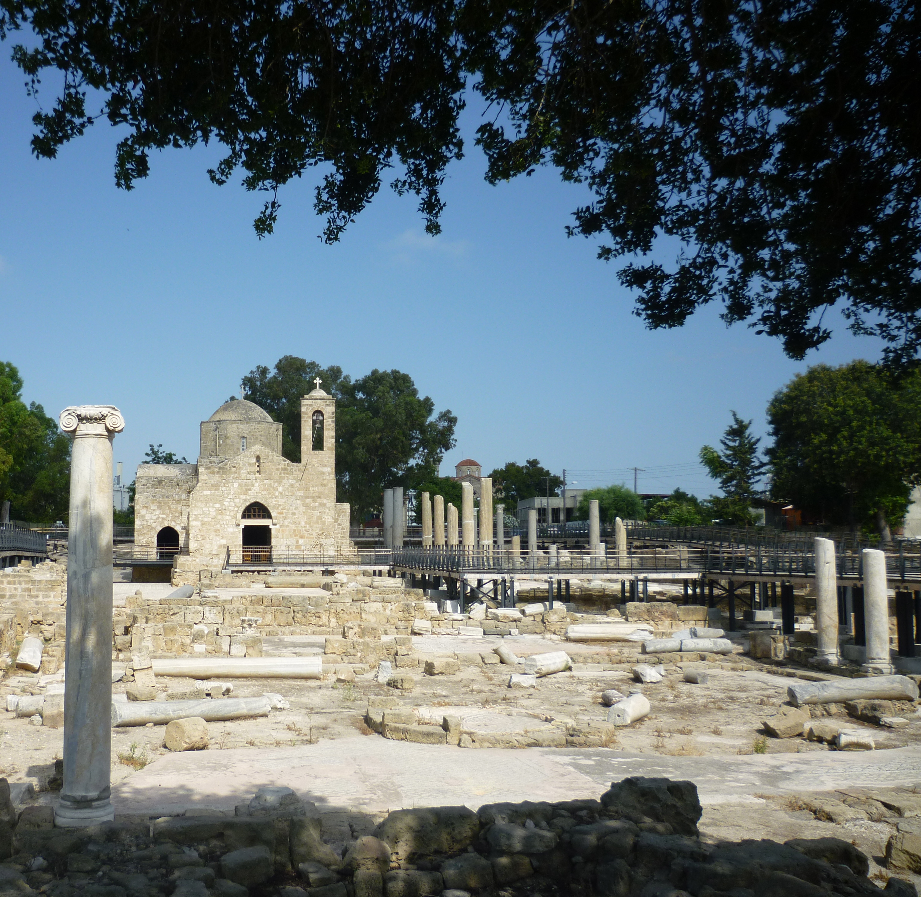 The first day in Cyprus saw sunset from the church of Agios Giorgios (St. George). Before that, though, a visit to the ecumenical center of Pahos, Agia Kyriaki Chrysopolitissa – otherwise now known as St. Paul’s Catholic Parish of the Latin Patriarchate of Jerusalem in Paphos, Cyprus (entrusted to them since 1986). The Anglican community of Paphos also accepted an invitation to use the Church for worship (since 1988). The invitation was extended to the Maronite, Lutheran and Finnish communities. The site includes “St. Paul’s Pillar”, where according to local tradition, the apostle was lashed 39 times for preaching Christianity, before managing to convert the local Roman proconsul, Sergius Paulus, the first recorded Roman official to convert. (cf Acts 13)