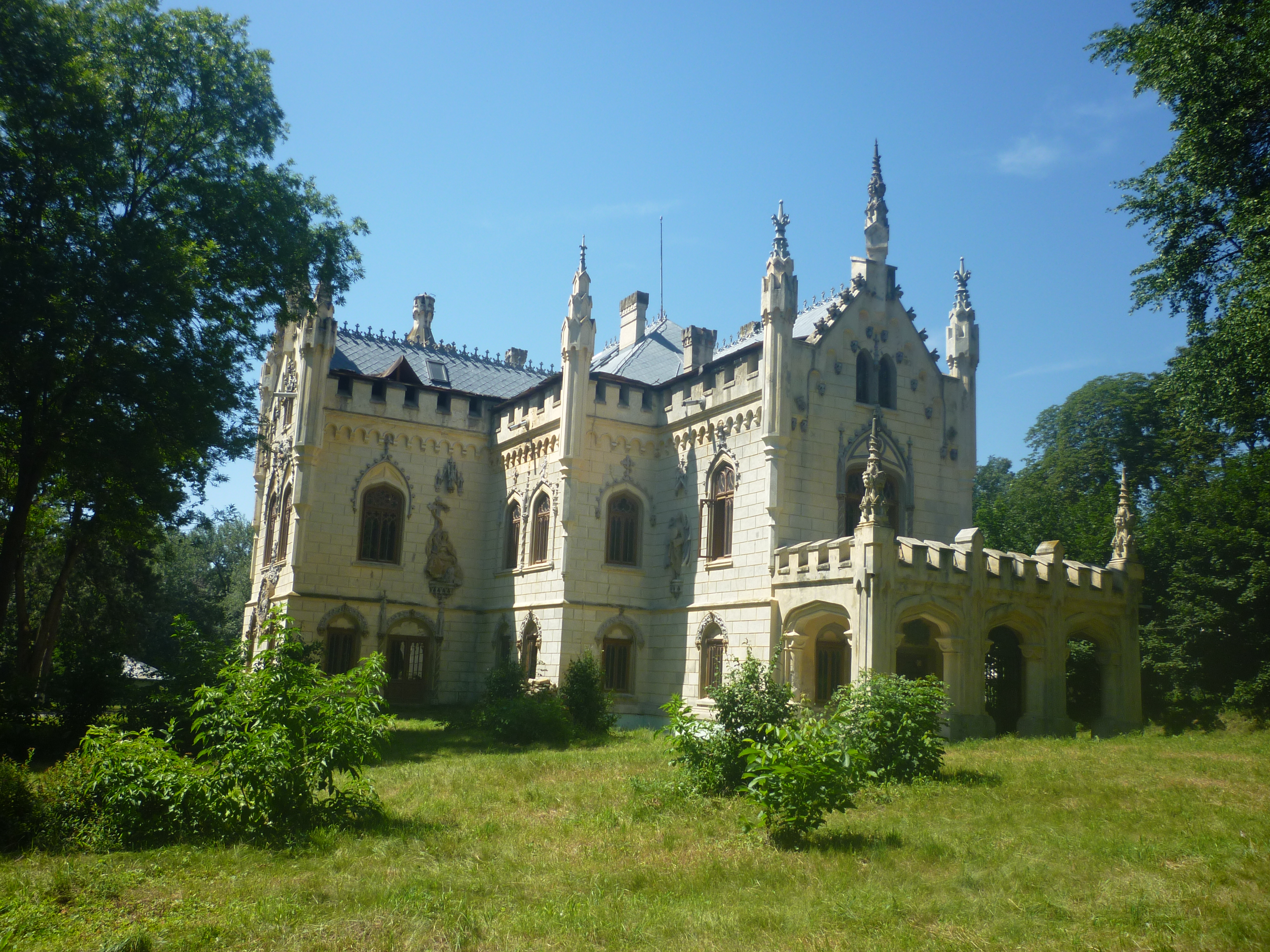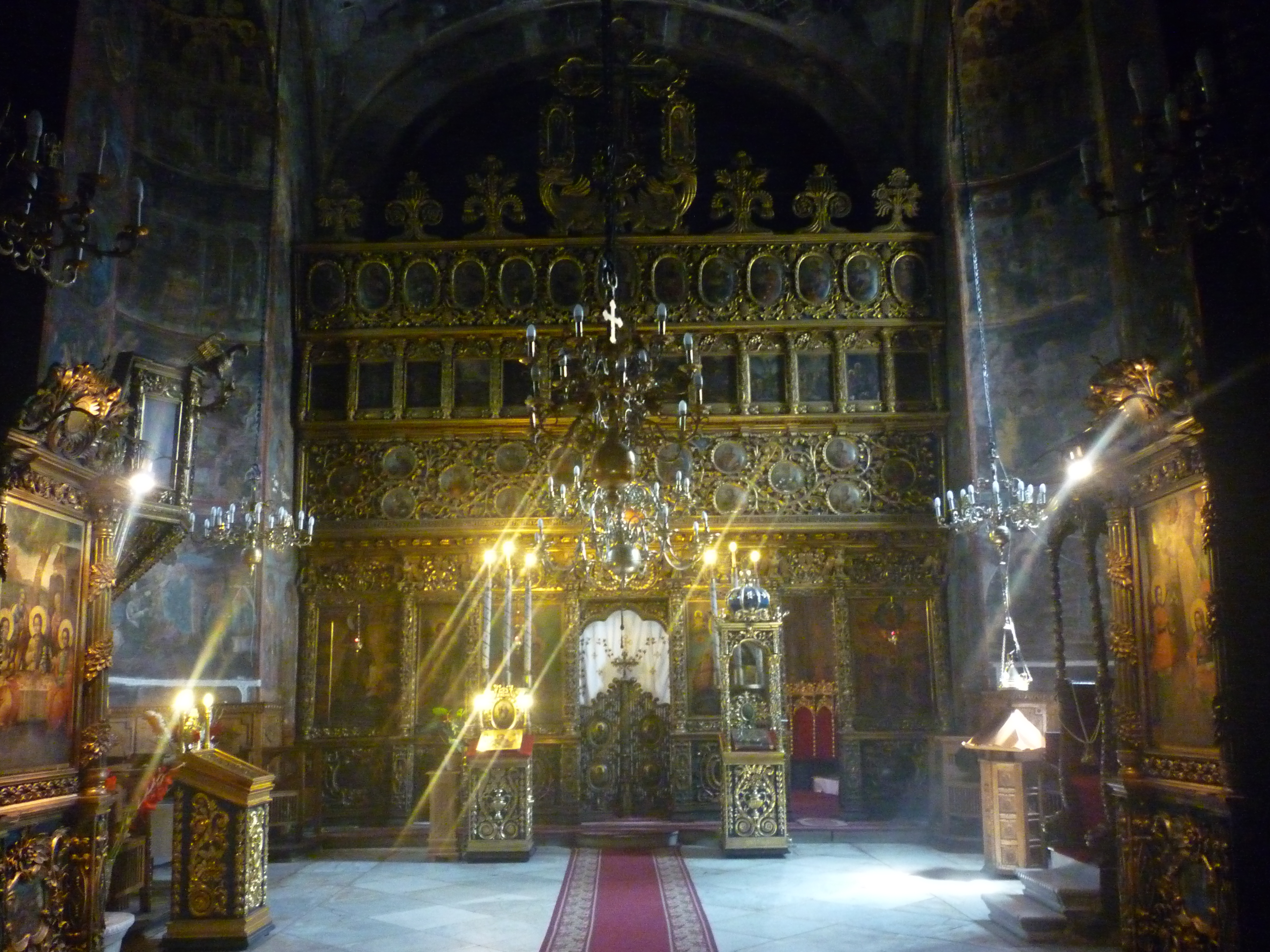 The setting is the almost surreal nineteenth century neo-gothic Sturdza Castle, near the village of Miclăuşeni. Built on the site of a fifteenth century manor estate, the castle once boasted a library of 60,000, including several rare first editions. Most of these were lost during the second world war, burned as fuel or stolen either by Nazi or Soviet soldiers. In 1947 the heiress donated the property to the Romanian Orthodox Metropolitanate of Iasi, and established a monastic community there. Only six years later, however, Communist authorities seized the land, and used the castle successively as a munitions depot, museum of military metallurgy, and hospital for children with severe mental disabilities. Villagers looted some of the original furniture, and other pieces were lost in two fires over the decades. As late as 2002, the place was still in complete disrepair. Recent work to restore it seems to have done a great job, but there is still a lot to be done – many of the original frescoes and decorations are so ruined, it seems more a question of renovation than restoration. A retreat center has been started, and the metropolitanate hopes to make a museum of part of the place. An iconography workshop already takes part of the space in the monastery complex, and the community of sisters numbers about forty.