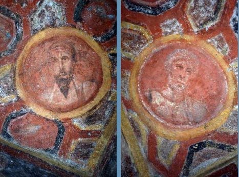 Throughout the Eternal City, you will see both saints together. On the Piazza in front of St. Peter’s Basilica, you see two giant statues, Peter on the left and Paul on the right. Atop the baldachino over the papal altar in Rome’s Cathedral-Basilica, St. John Lateran, two gold reliquaries house purported relics of each of the saints. The oldest known depiction of either saint is a depiction of both, at the catacombs of St. Thecla.
