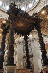 Noted art historian Elizabeth Lev joined us after the liturgy to give us a brief, but informative, insider’s tour of the basilica of St. Peter. Even for those who have been in Rome for years, something new was gleaned from her rich presentation. For me, it was the answer to one of the Eternal City’s eternal questions: “Hey Bernini, what’s with the twisted columns on the baldacchino???”